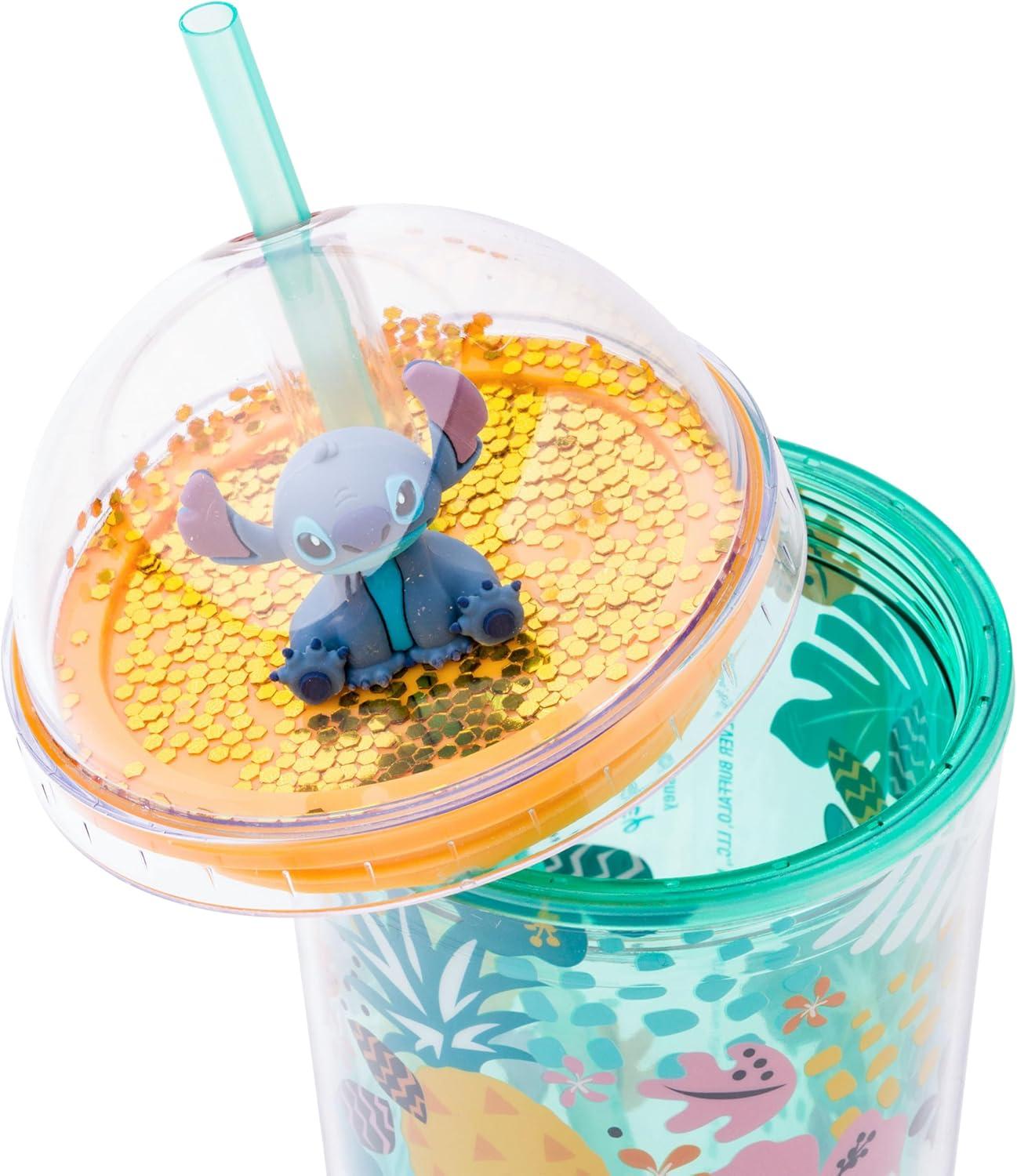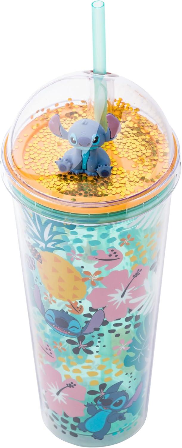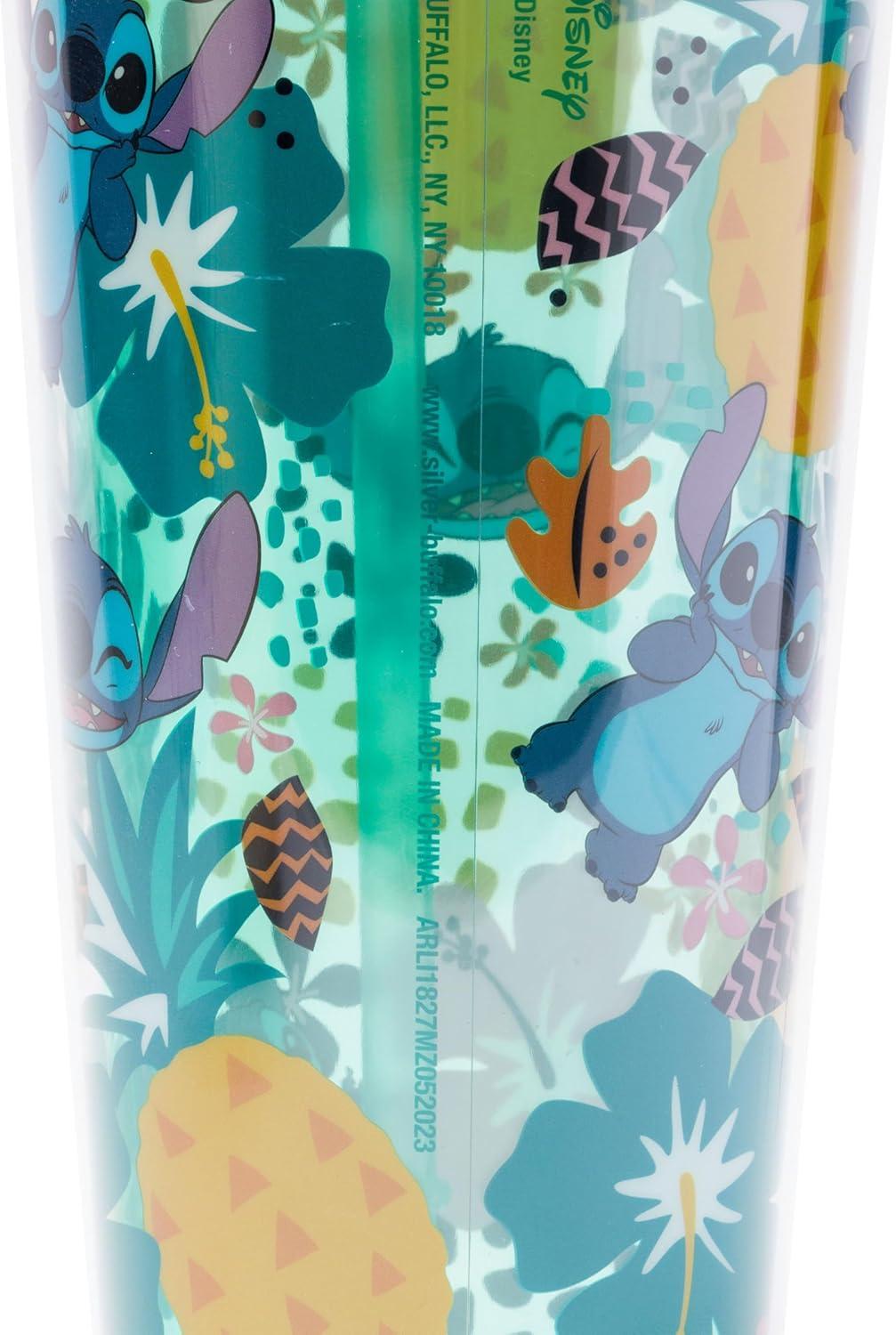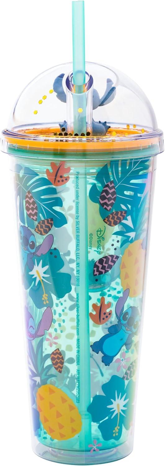 Silver Buffalo Disney Lilo and Stitch Aloha Tropical Leaves Pattern Dome Glitter Top Travel Tumbler, 24 Ounces(Lilo and Stitch)