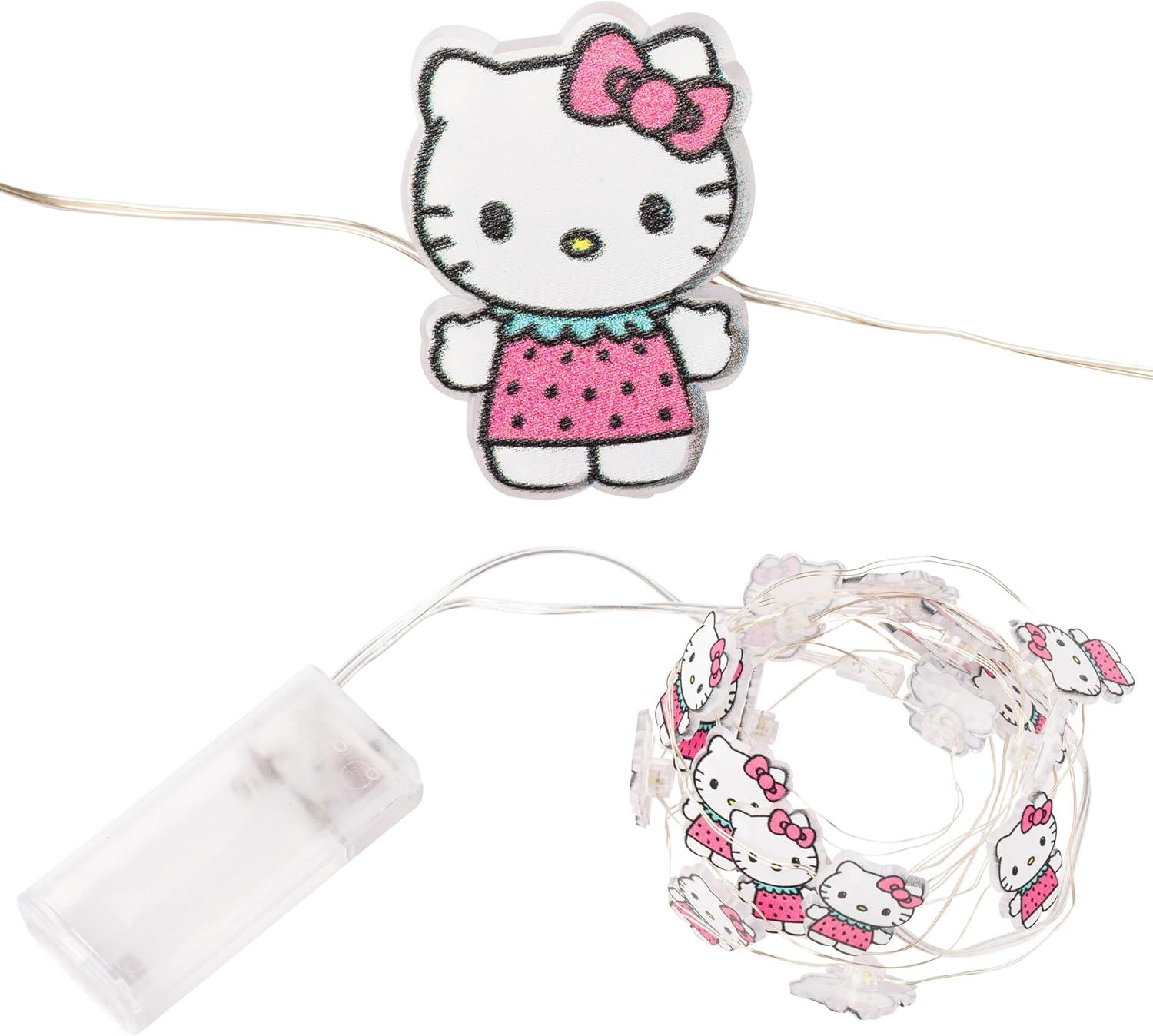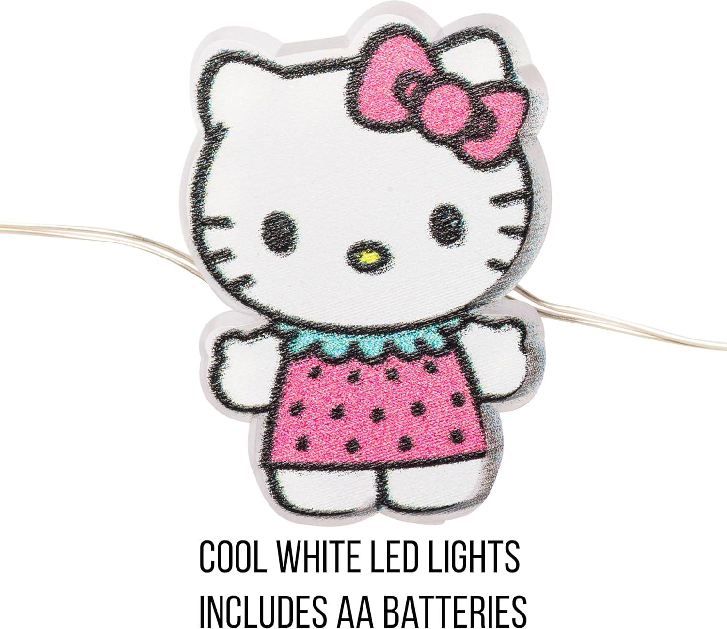 Silver Buffalo Hello Kitty Face with Pink Bow 20ct Decorative String Lights, 7 Feet Long, Battery Powered (Batteries Not Included), Pink LED, Indoor Use Only(Hello Kitty Strawberry Dress)