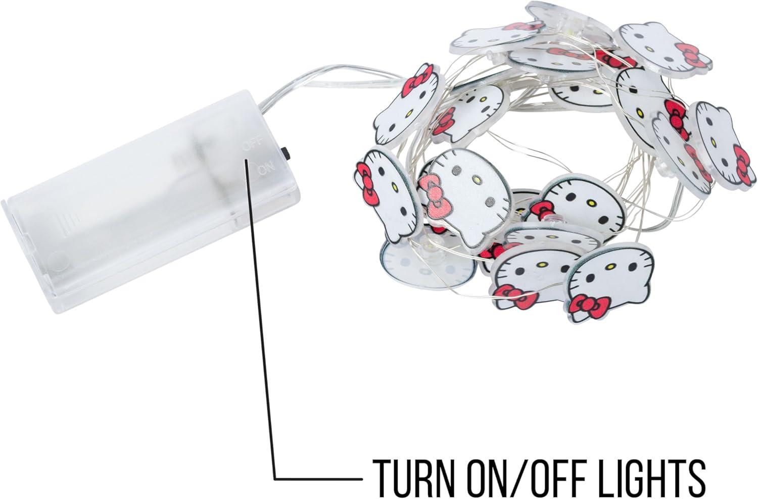 Silver Buffalo Hello Kitty Face with Pink Bow 20ct Decorative String Lights, 7 Feet Long, Battery Powered (Batteries Not Included), Pink LED, Indoor Use Only(Central Perk)