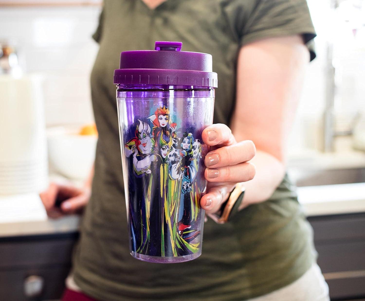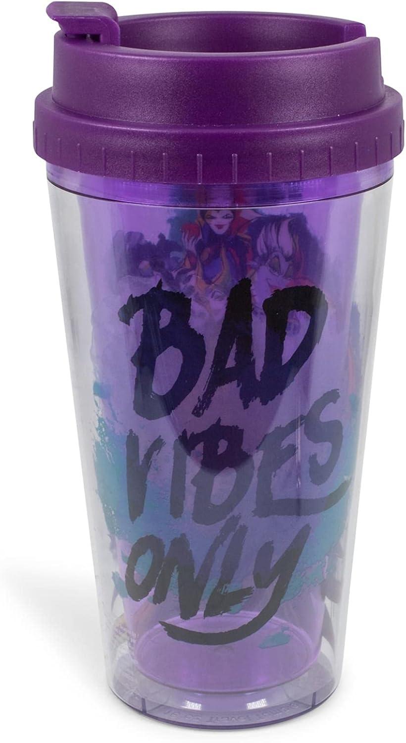 Disney Villains Bad Vibes Only Double-Walled Plastic Tumbler With Lid | Official Kitchen Accessories | Travel Coffee Mugs, Novelty Drinkware For Home Kitchen Set | Holds 16 Ounces
