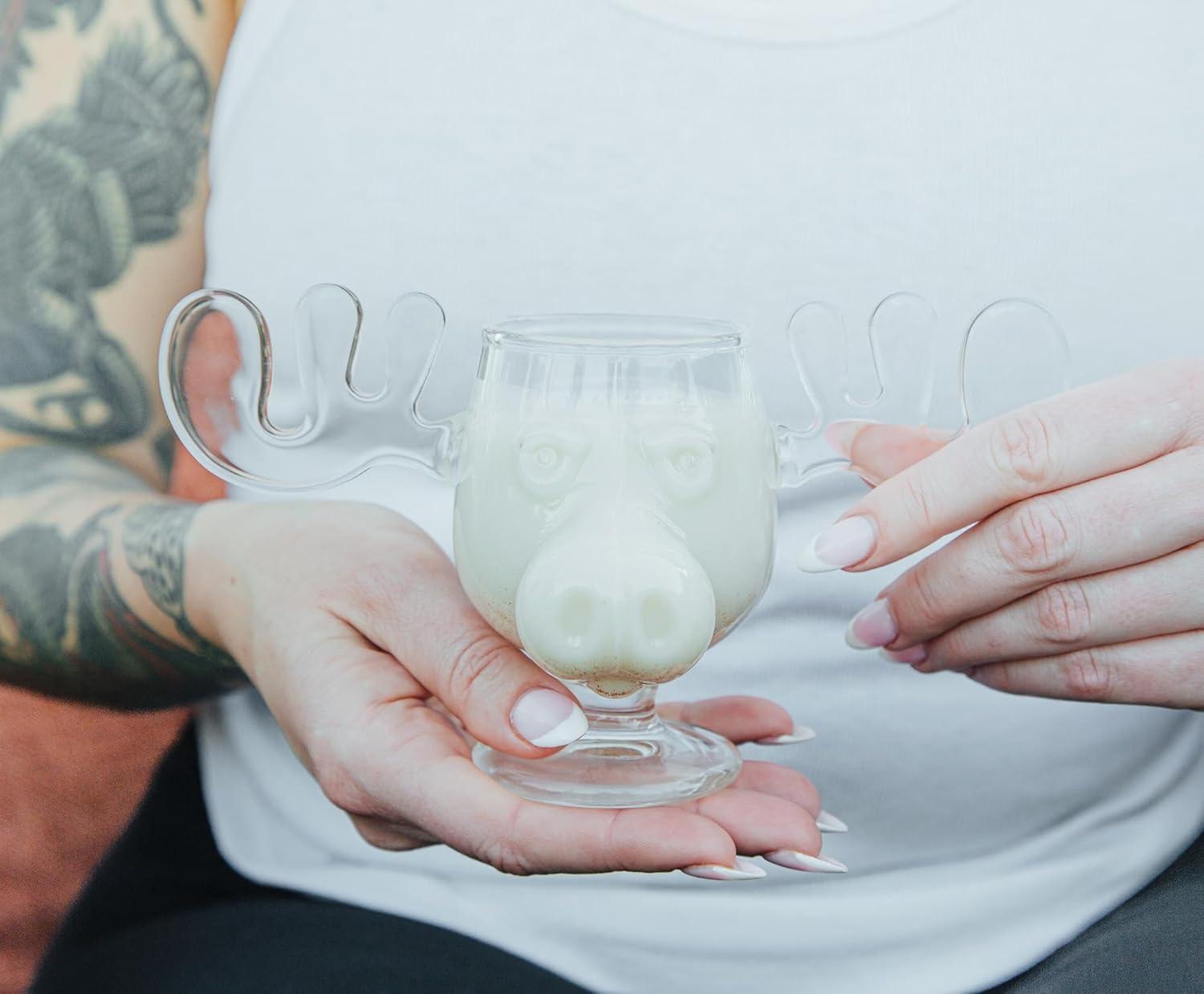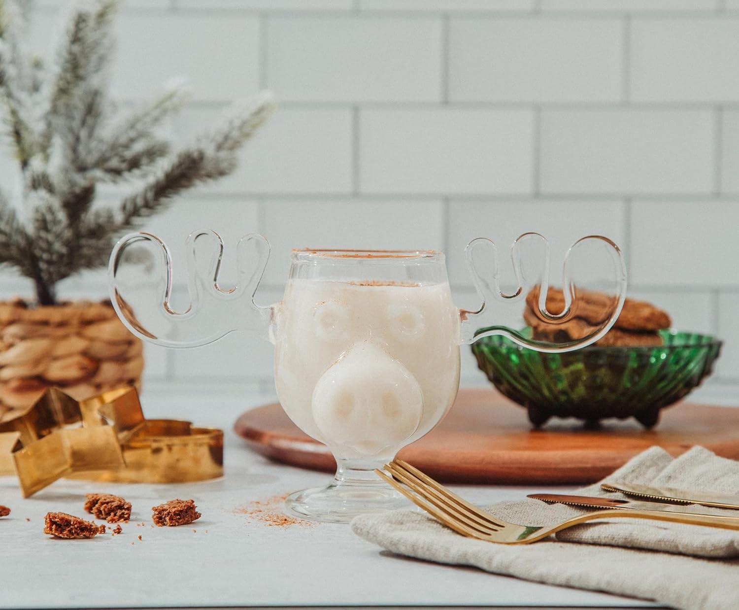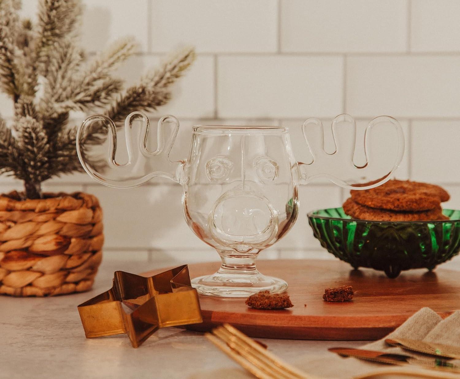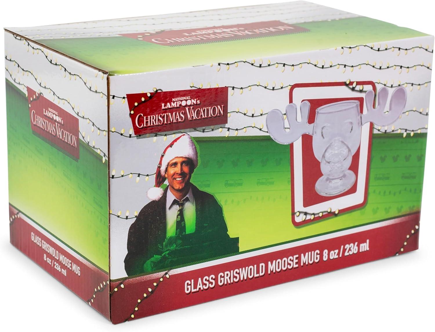 CLASSIC DESIGN: Clear molded glass cup with an 8oz capacity featuring the iconic Moose Head design from National Lampoon’s Christmas Vacation, perfect for holiday gatherings and festive décor.