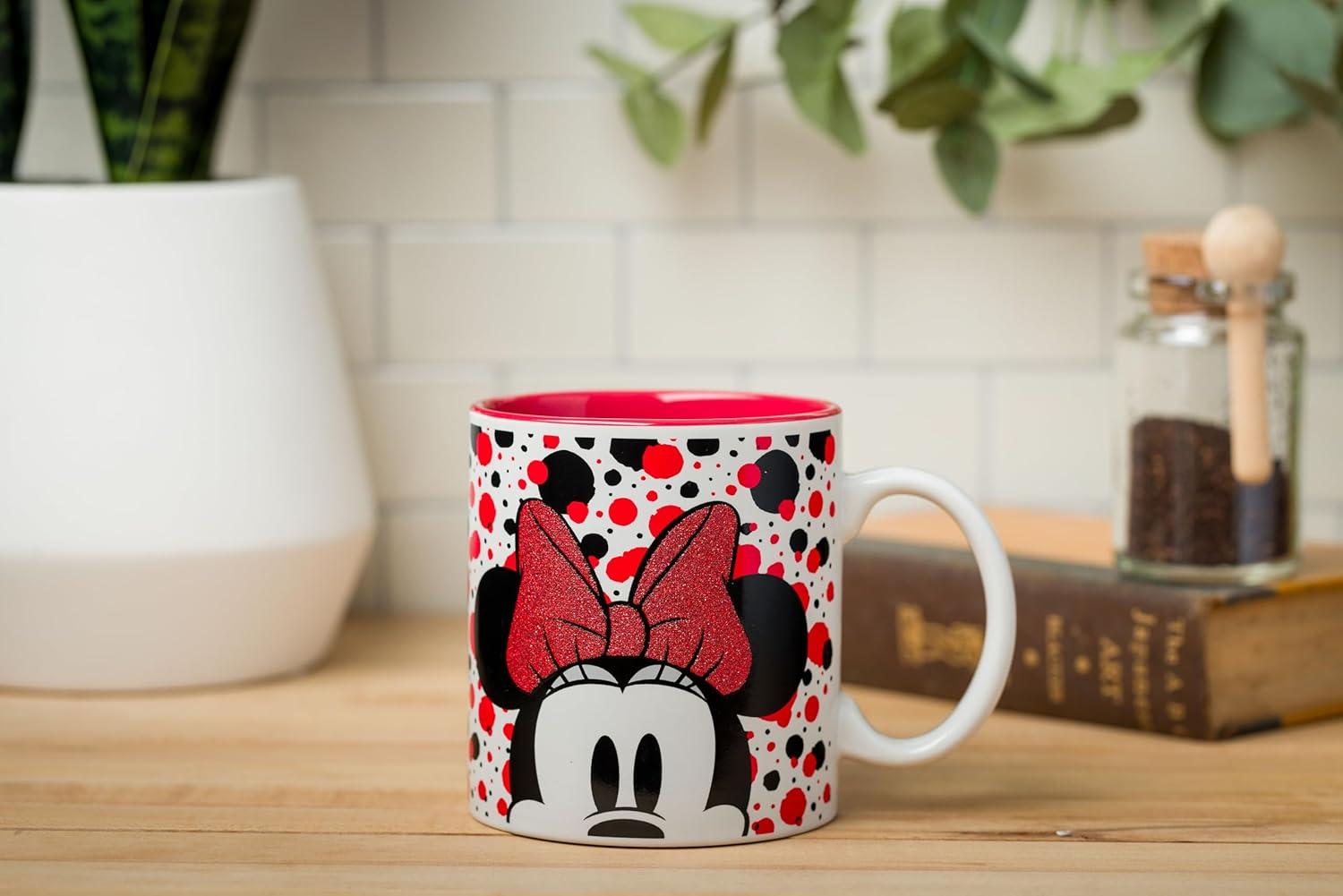 Silver Buffalo Disney 1928 Vintage Mickey Mouse He Leads Them All Ceramic Mug, 20 Ounces(Minnie Polka Dots Glitter (20 Ounces))