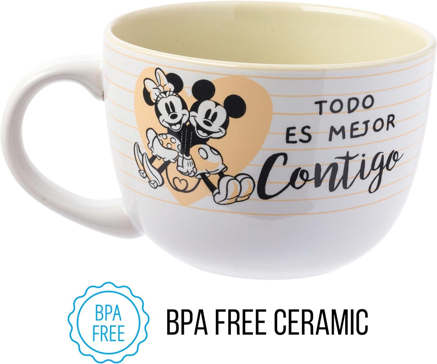 Silver Buffalo Elf Buddy Iconic Quotes Christmas Ceramic Soup Mug, 24 Ounces(Mickey and Minnie: Todo Es Mejor Contigo)