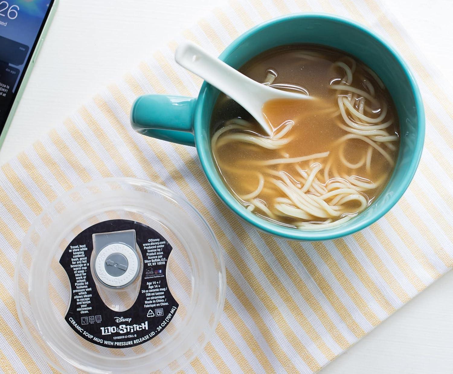 Enjoy this Disney Lilo and Stitch 24oz ceramic soup mug with a vented lid. Around the mug features Stitch making different faces. Easily store your extra soup with this soup mug with a lid!. Its not just for Soup, our novelty Soup mug can also be used as a paperweight, storage for pens or loose change, or even mug cakes. Our ceramic novelty Soup mug is perfect for hot or cold beverages, is BPA-free, toxin-free, microwave safe and top-shelf dishwasher safe. Silver Buffalo is a trend-setting manufacturer and the leading brand and lifestyle distributor of licensed home decor and housewares. We are a creative think tank working in collaboration with the worlds top entertainment companies and most recognized consumer Brands to develop unique, creative and ground-breaking products. We focus on the design, manufacture and distribution of items featuring popular cultural icons. Silver Buffalo features all of your favorite comic heroes, Cartoon characters, board games, movies, and more. Our team prides itself on innovating exciting products that connect with the child or fan(atic) in all of us to bring memories to life. Our products can be found at your favorite national retail stores, online or at independent specialty stores nationwide.