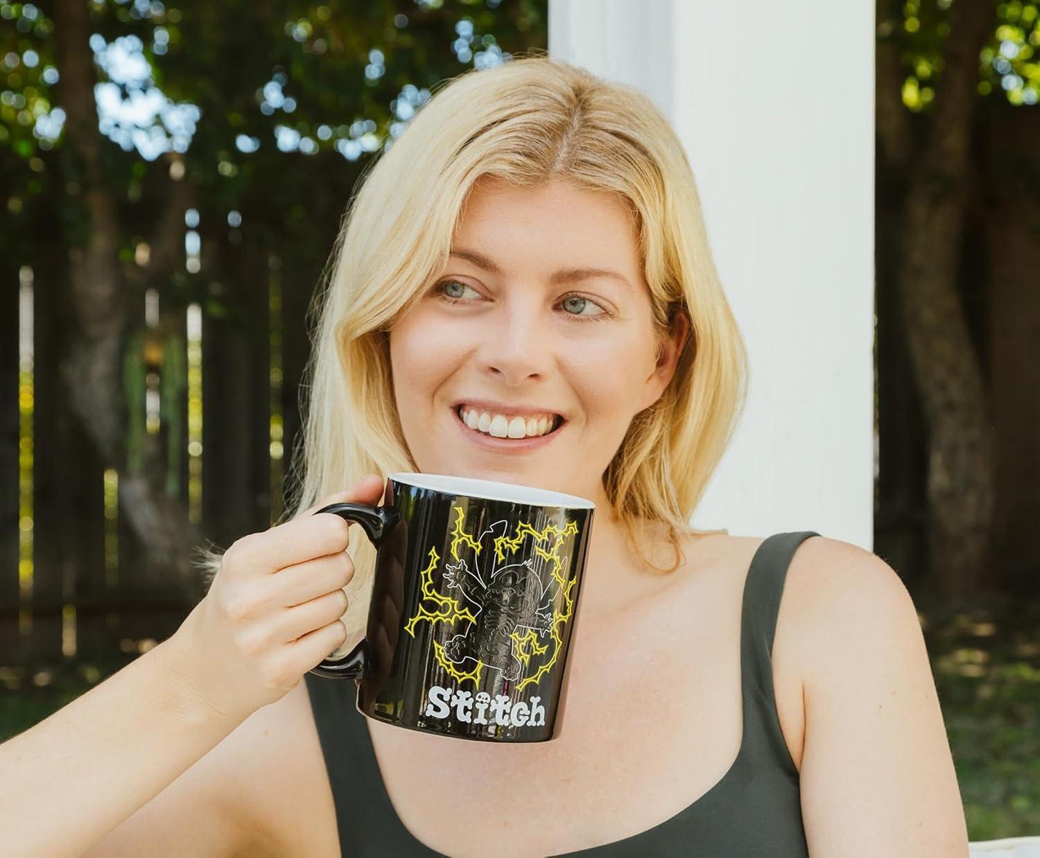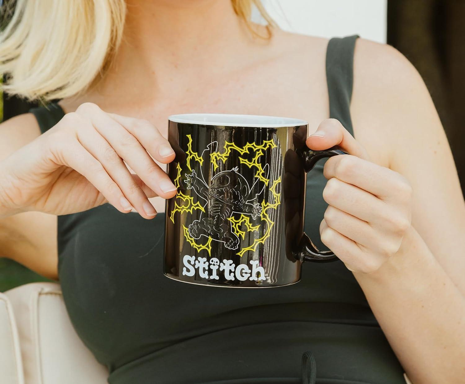 Silver Buffalo Lilo and Stitch Halloween Give Me Candy Glitter 20oz Ceramic Mug(Glow in the Dark Shock (20 Ounces))