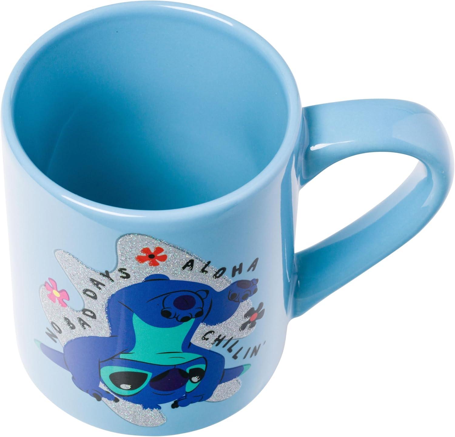 Silver Buffalo Lilo and Stitch Halloween Give Me Candy Glitter 20oz Ceramic Mug(No Bad Days Chillin Glitter (14 Ounces))