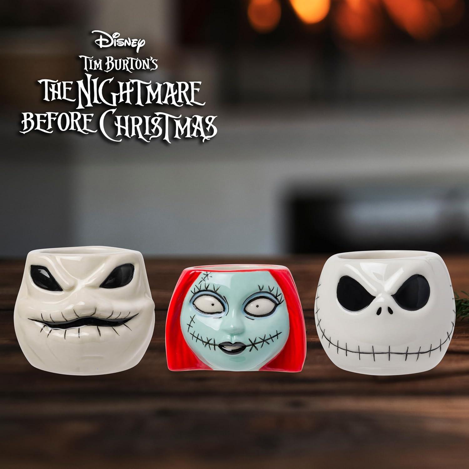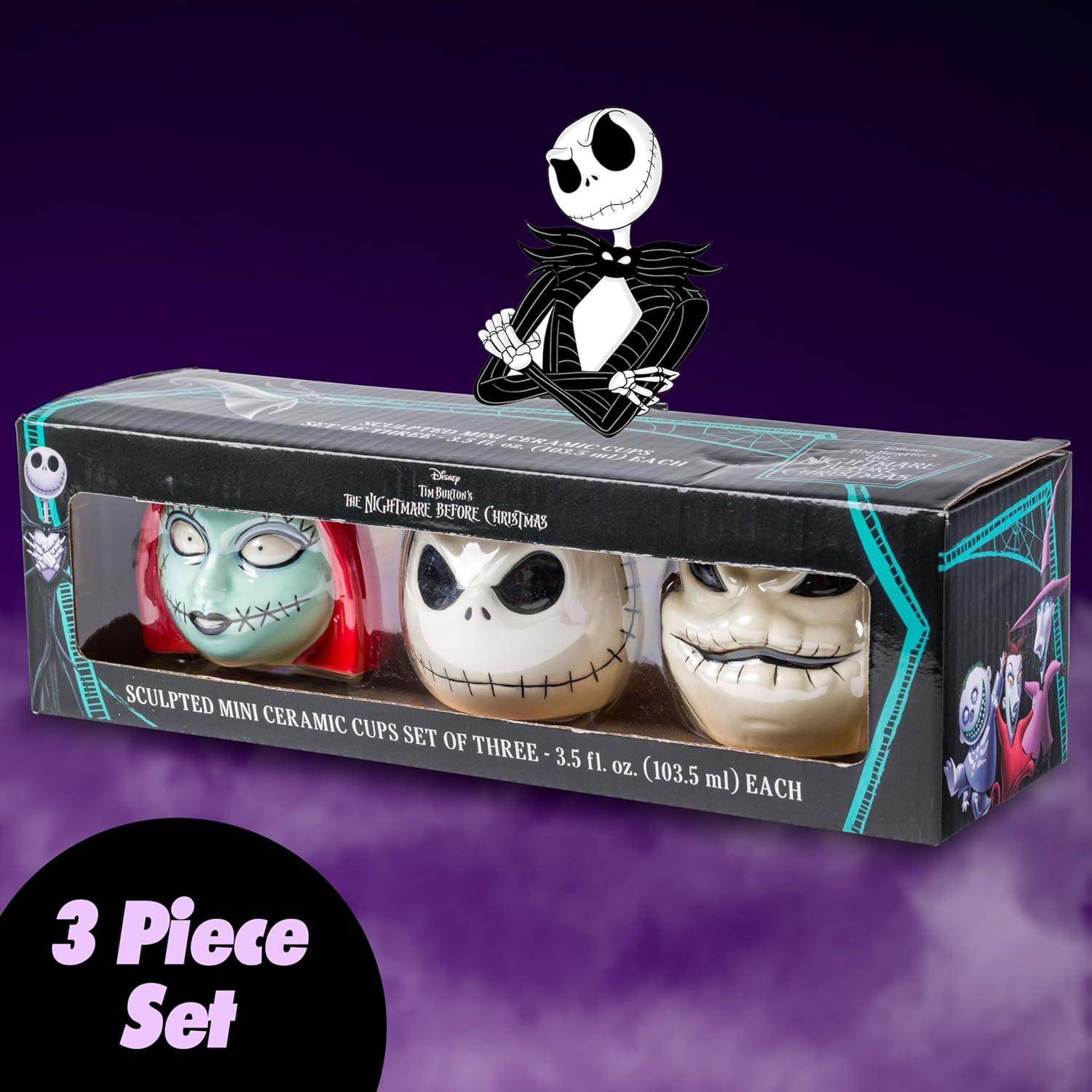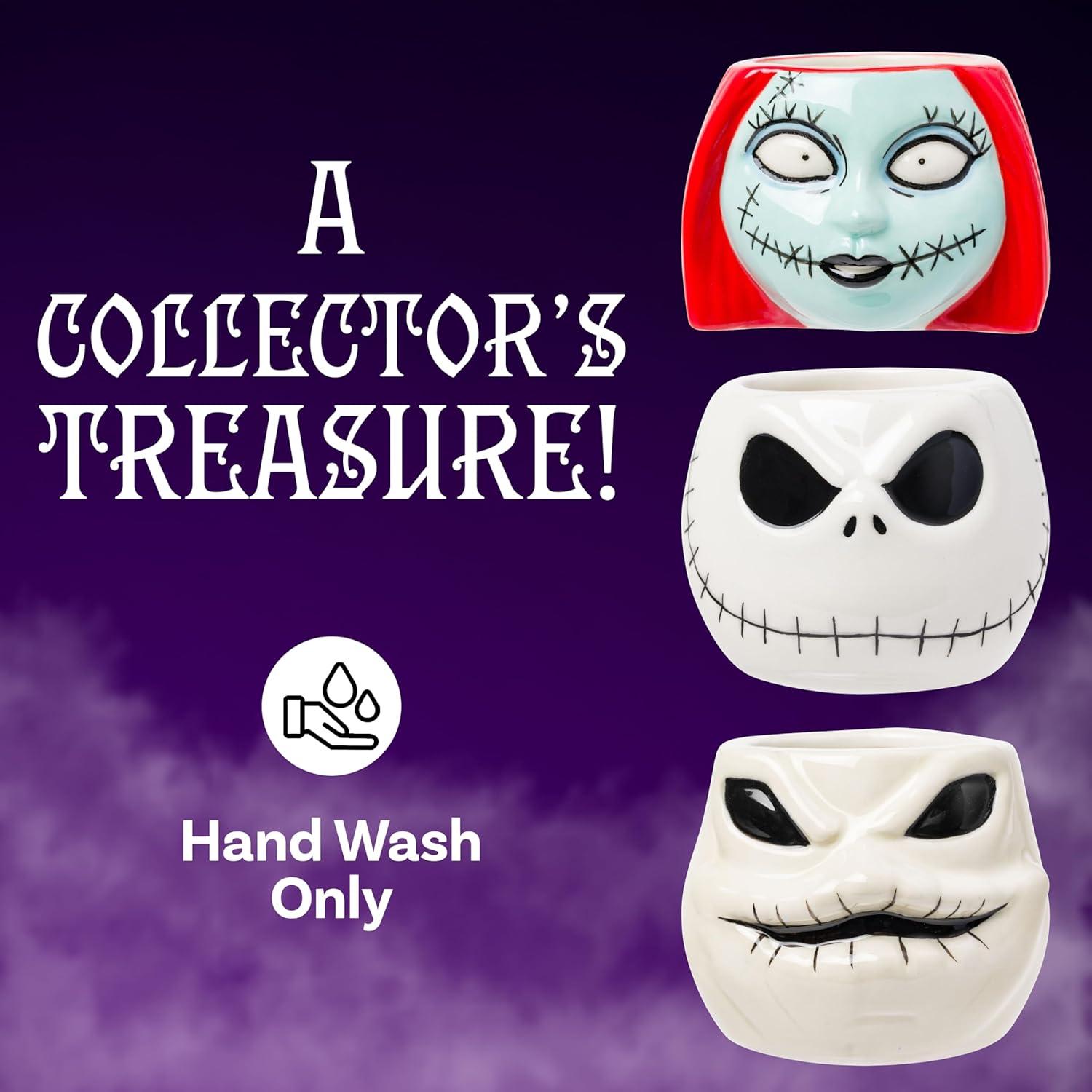 DESIGN & MATERIAL: This 3-piece sculpted mini cup set features Sally and Oogie Boogie from The Nightmare Before Christmas with detailed character faces. Made of durable ceramic, each mini cup brings Halloween Town magic to your collection.