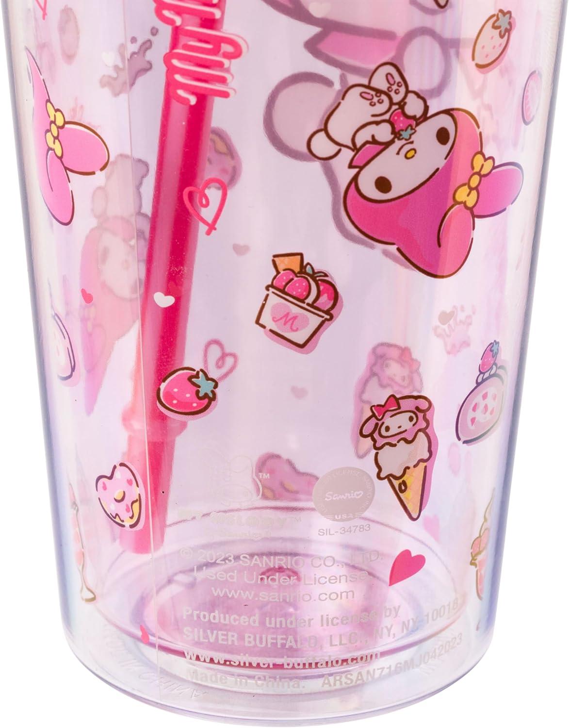 Silver Buffalo Sanrio Hello Kitty And Friends Featuring Kuromi and Little Twin Stars Plastic Cold Cup with Lid and Topper Straw, 24 ounces(Sanrio My Melody Pink Strawberry)