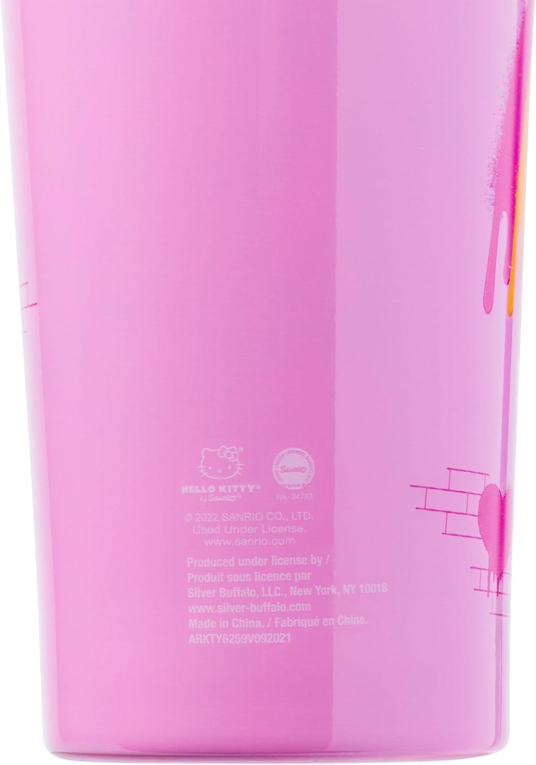 Enjoy your favorite beverages in this adorable Hello Kitty tumbler! Themed tumbler features Hello Kitty against a graffiti inspired rainbow. The beloved character is featured sitting with her mouse bestie, Joey, beside her. Written beneath the characters is “Hello Kitty.” Tumbler is pink with a blue straw. This tumbler, with its double walled capabilities, is designed to keep drinks warm or cool for as long as possible. Complete with a secure lid and reusable straw, this is the perfect cup to keep you hydrated while on the go. Ideal for road trips, sporting events, exercise, and picnics. This tumbler features the beloved kawaii character, Hello Kitty, making it an amazingly adorable Christmas, birthday, or housewarming gift for fans of all ages. NOT for microwave use. HAND WASH ONLY. Take a dive into the fictional world with Silver Buffalo! Silver Buffalo provides fans with official merchandise from their favorite characters. Working alongside licensors and brands, we create unique and imaginative products which are designed with great care and detail. Silver Buffalo aims to connect fans to their favorite cartoon characters, superheroes, movies, tv-series, and more. Celebrate your fandom!