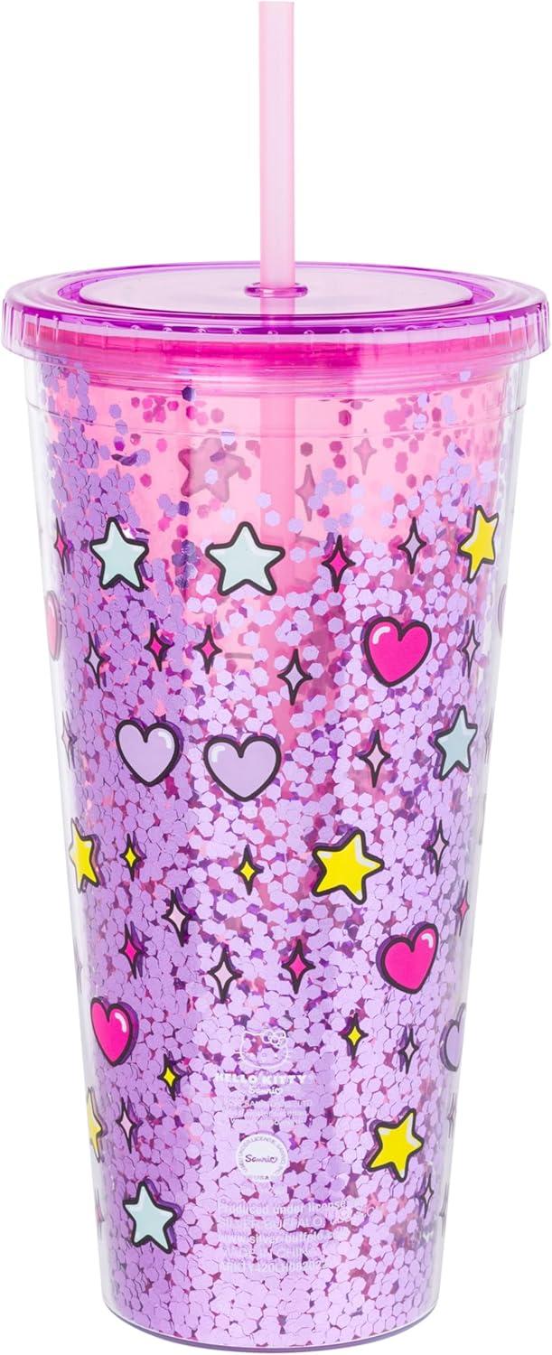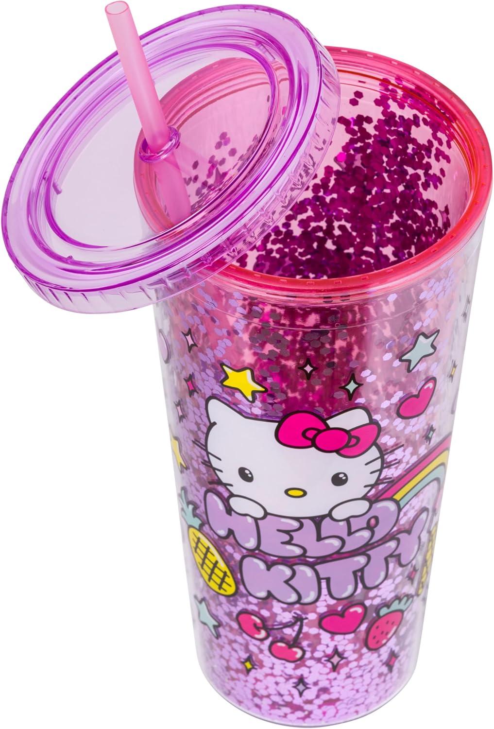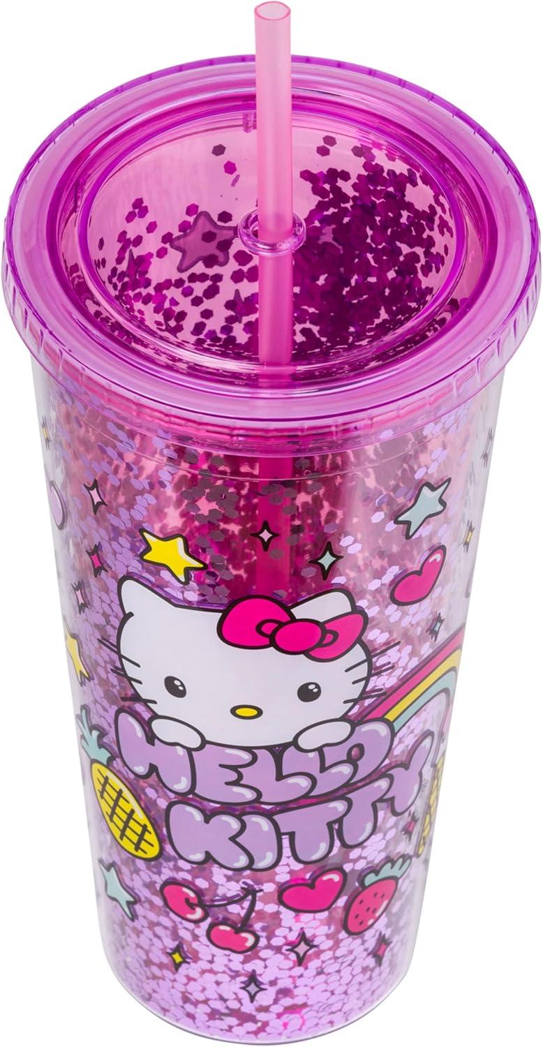 Silver Buffalo Sanrio Hello Kitty Rainbow Confetti Carnival Cup With Lid and Straw | 32 Ounces