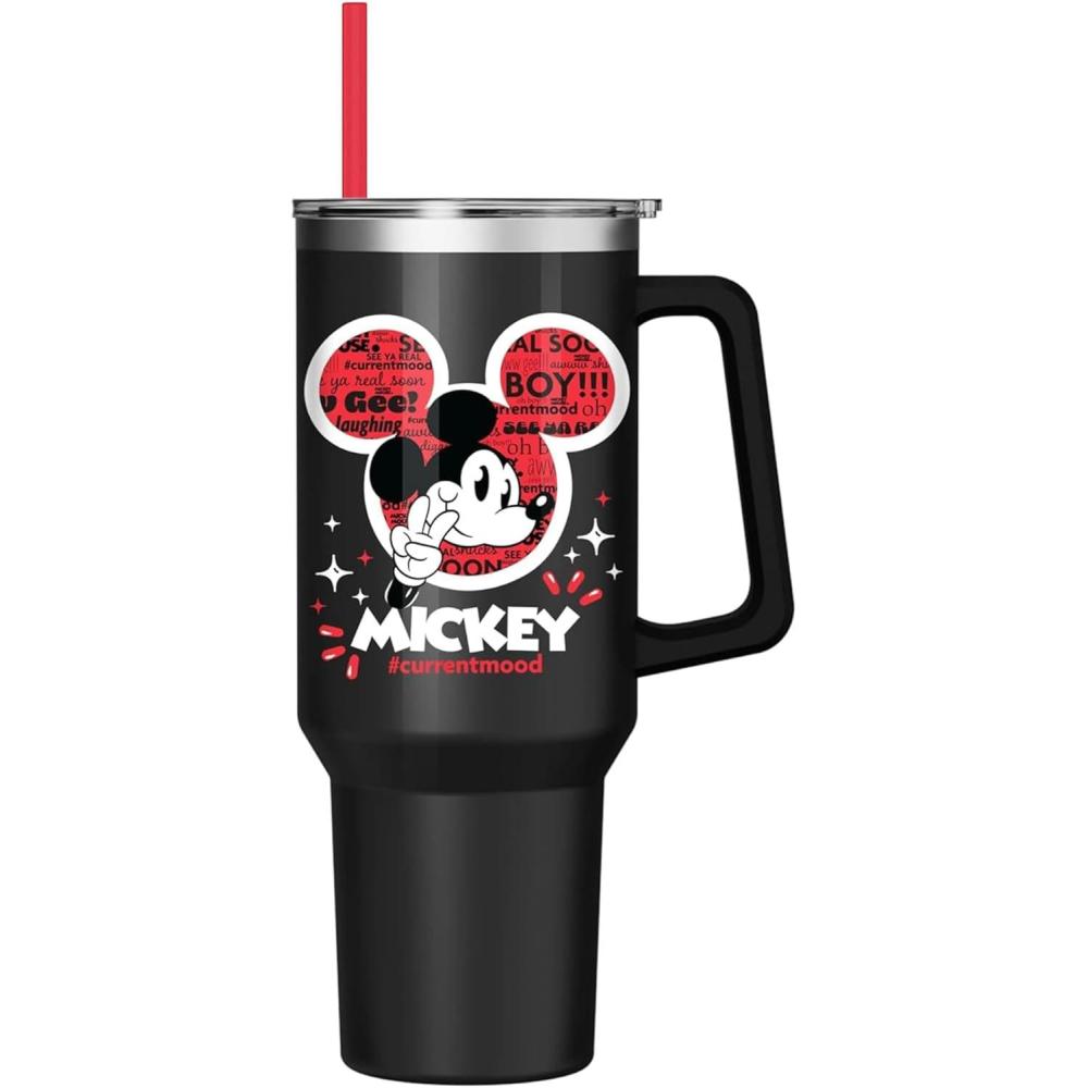 Silver Buffalo Spongebob Squarepants Jellyfishing in Bikini Bottom Double Walled Stainless Steel Tumbler with Handle, Straw, and Straw Cap, Fits in Standard Cup Holder, 40 Ounces(Mickey Mouse #currentmood)