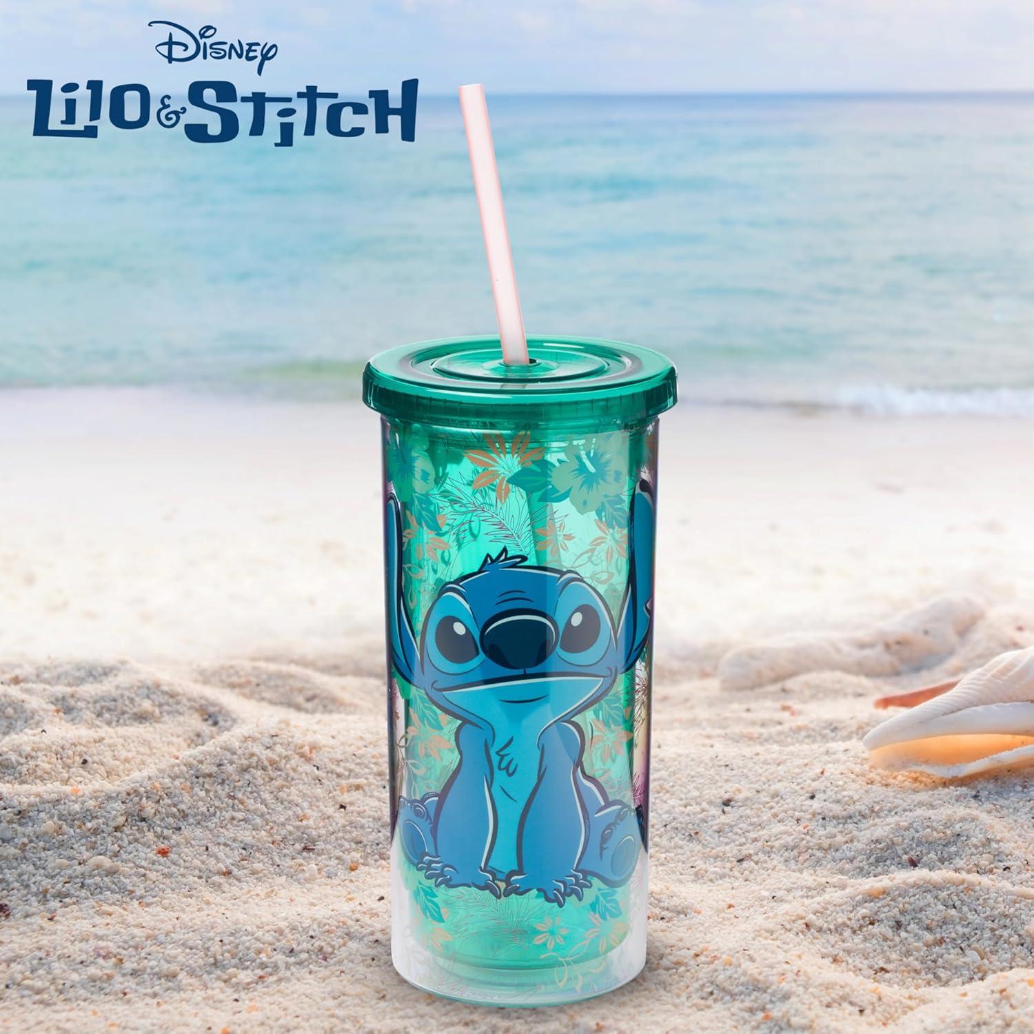 Silver Buffalo Wicked Core Elphaba and Glinda Split Patterns Rhinestone Lid 20oz Plastic Tall Cold Cup w/Lid and Straw(Lilo and Stitch Sitting Tropical)