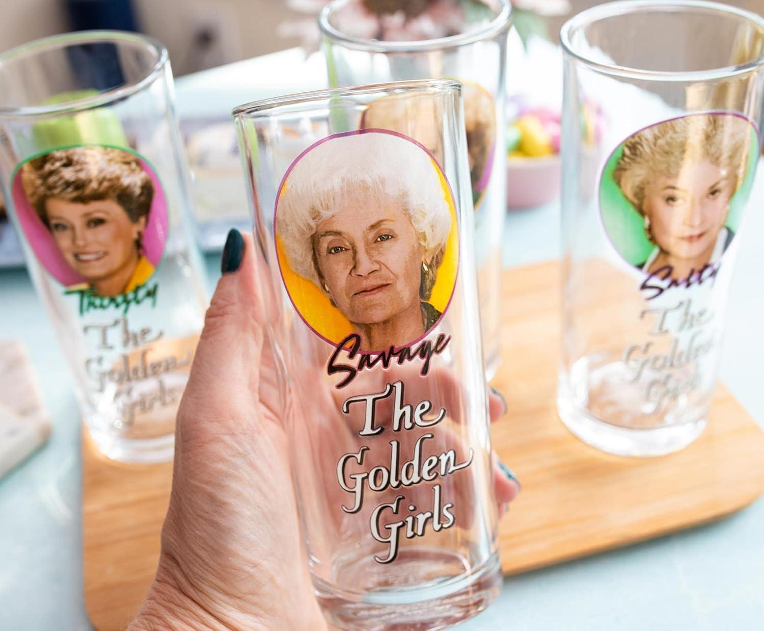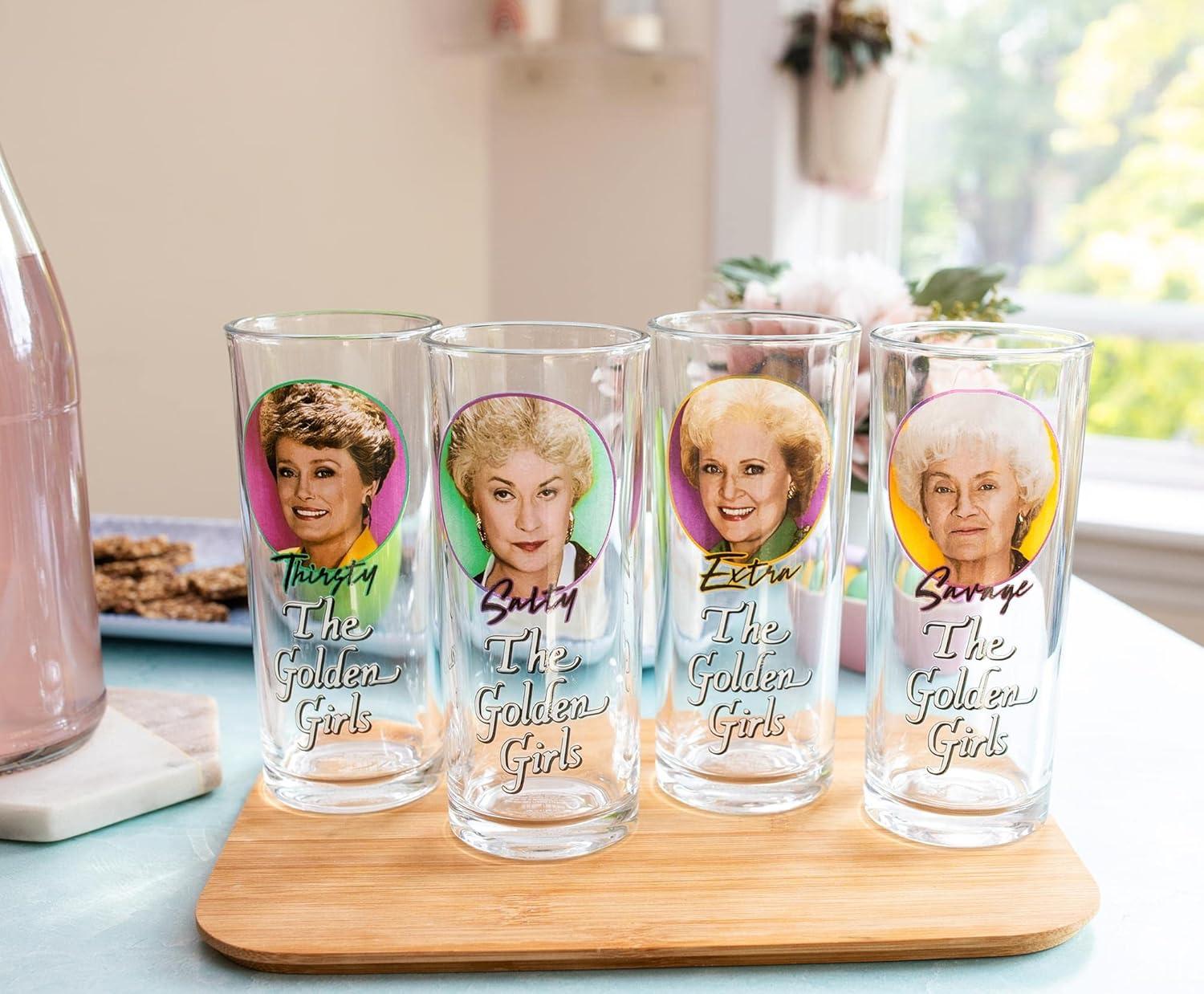 The Golden Girls Frames Logo 10-Ounce Tumbler Glasses, Set of 4 | Home Barware Cups For Mimosas, Cocktails